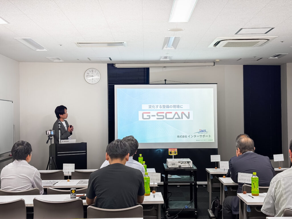 株式会社インターサポート(以下、インターサポート)広報・PR担当の南孝幸氏が、G-SCANの導入工場における活用事例を示しつつ、アフターサポート体制や、スキャンツール補助金の活用方法を解説しました。会場では実機を展示し、多くの参加者から質問が寄せられました。